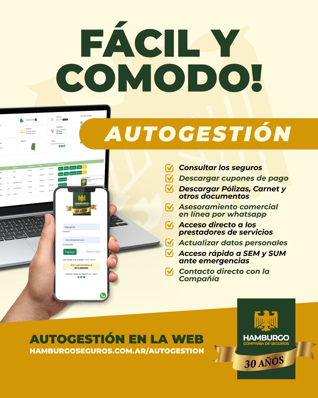 La plataforma Autogestión de Hamburgo Seguros te permite acceder de forma rápida y segura a toda la información de tus pólizas, realizar gestiones online y mantenerte al día con tus coberturas.